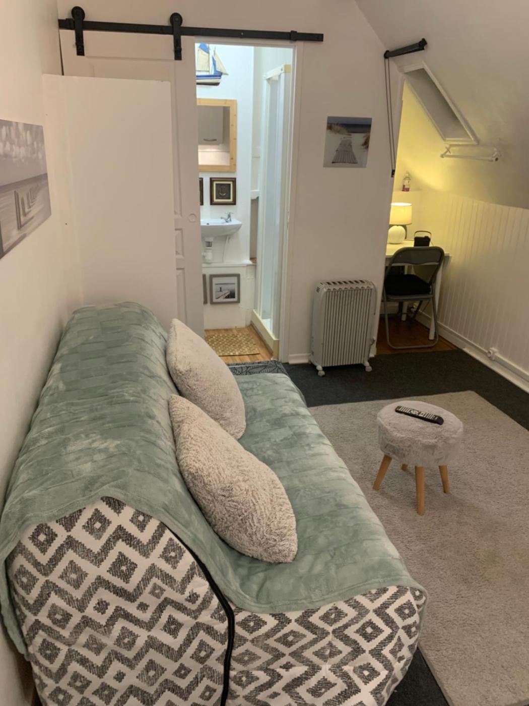 Studio. This studio is located on the third floor and has sloping ceilings.