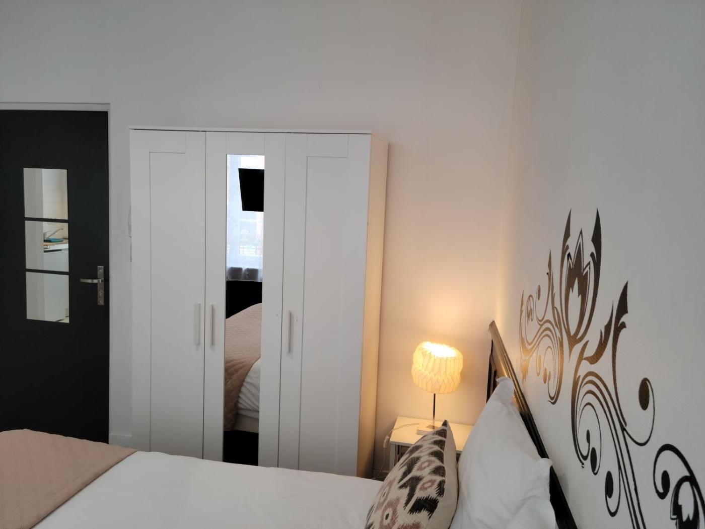 Appartement 1 Chambre. Boasting a private entrance, this apartment features a kitchenette, 1 bedroom and 1 bathroom with a shower and a hairdryer. Meals can be prepared in the kitchenette, which has a refrigerator, kitchenware, a microwave and a tea and coffee maker. The apartment features a dining area, a wardrobe, heating, as well as a flat-screen TV. The unit has 1 bed.