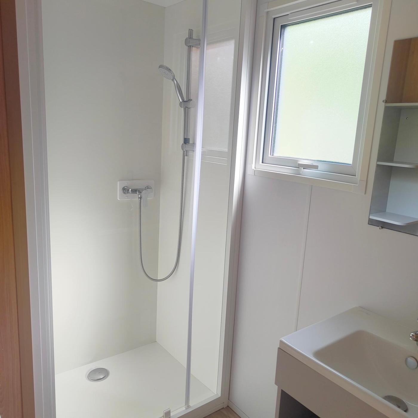 Mobile Home. Featuring a private entrance, this air-conditioned mobile home comprises 1 living room, 2 separate bedrooms and 1 bathroom with a shower. Meals can be prepared in the well-fitted kitchen, which comes with a stovetop, a refrigerator, kitchenware and a microwave. The mobile home provides a coffee machine, a seating area, a dining area, as well as a terrace. The unit offers 3 beds. ;